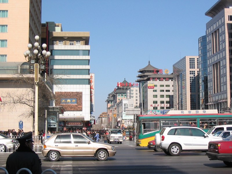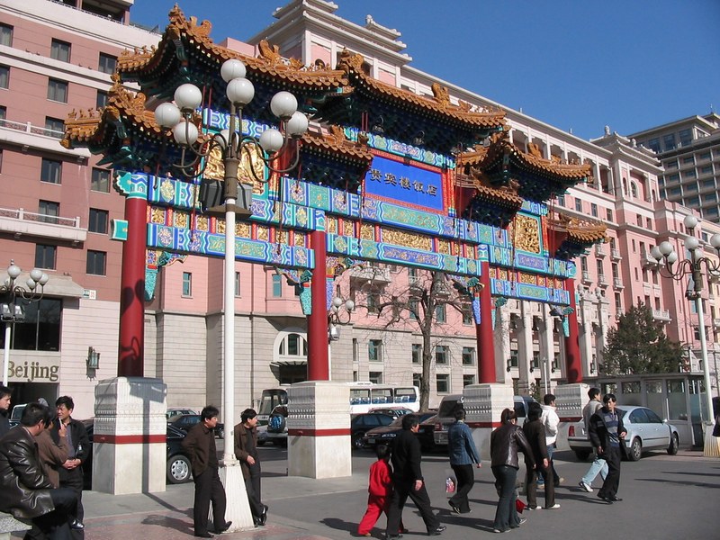 L'entrée de la zone piétonne de la rue Wangfujin qui