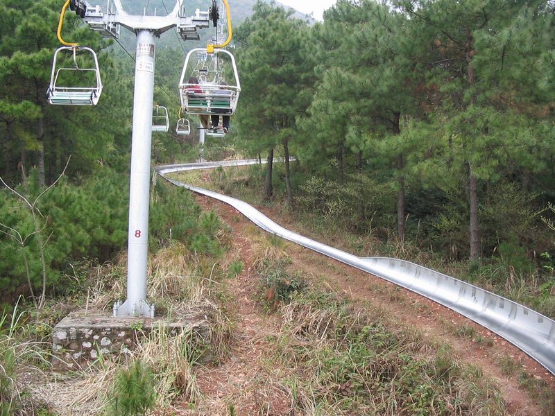 Mercredi 25/02; .... L'après-midi, nous sommes allés au mont Yao, et nous sommes montés au sommet en télésiège, puis avons pris des photos du panorama et nous avons escaladé sur le reste de la colline pour aller à coté de la station télé. En redescendant, à mi-chemin, nous nous sommes arrêtés sur une plate-forme, afin de continuer la descente dans un toboggan sur des sortes de luges. En repartant de ce mont, nous sommes allés visiter une fabrique de thé, et avons pu y reconnaître les différents types de thé, ainsi que les différentes qualités. Ensuite, on nous a montré une cérémonie du thé dans un petit salon; comment on tient la tasse, comment on sert,…